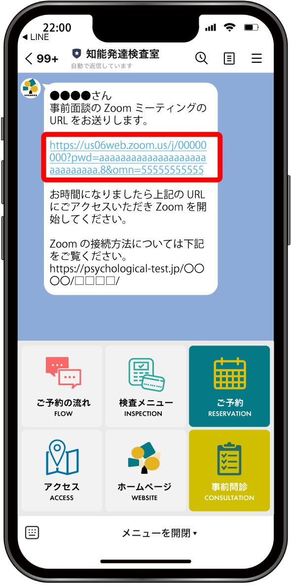 事前面談の接続用URLはスタッフよりLINEトークルームにお送りします。