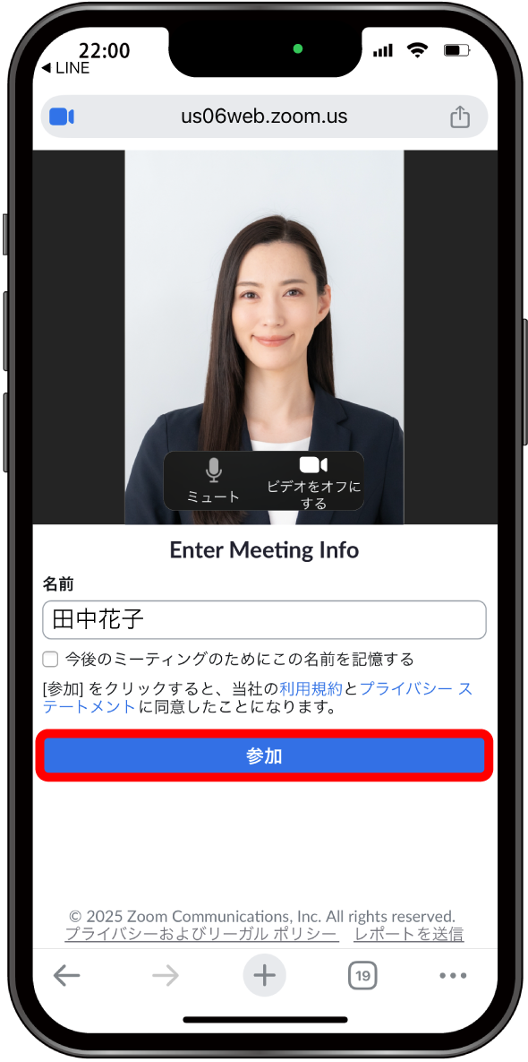 準備が出来ましたので青い「参加」ボタンをタップしてください。
