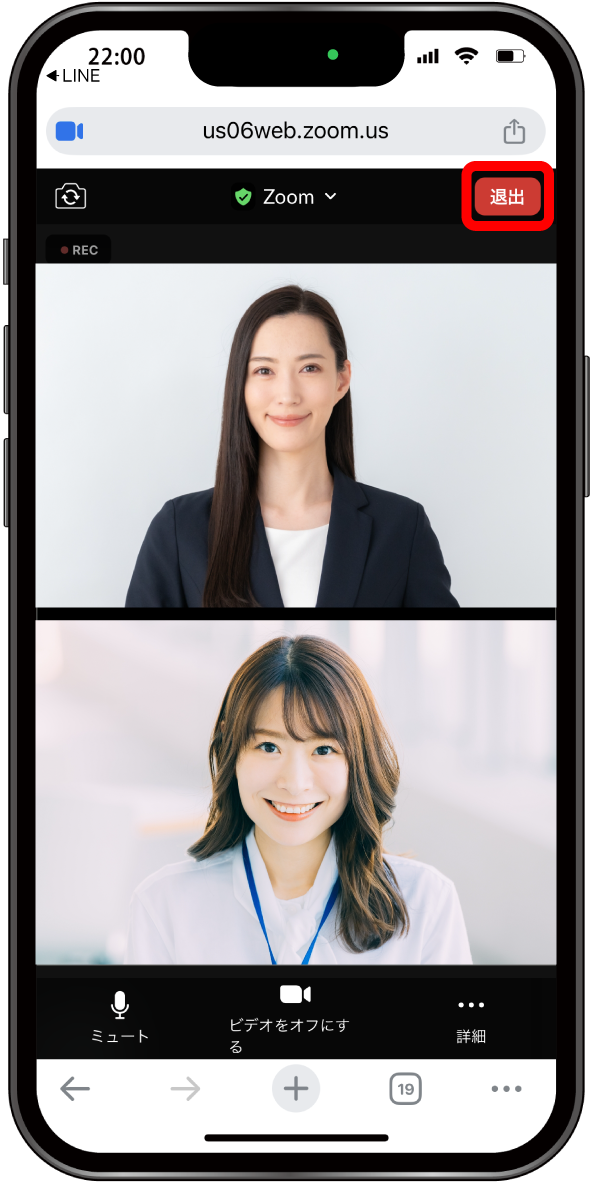 面談終了時は、右上の赤い「退出」ボタンを押して終了です。